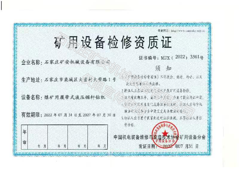 石家莊礦安機(jī)械設(shè)備有限公司成立于2011年3月,公司位于風(fēng)景優(yōu)美、科技發(fā)達(dá)、交通便利的石家莊市欒城區(qū),是一家專注生產(chǎn)煤礦井下支護(hù)機(jī)具(錨桿鉆機(jī))和安全鉆機(jī)(防突,架柱等)及氣動(dòng)隔膜泵等礦用機(jī)械設(shè)備的********,是國(guó)內(nèi)煤礦機(jī)械裝備的生產(chǎn)商和服務(wù)商,根據(jù)用戶需求提供井下適用的鉆機(jī)施工解決方案。公司致力于打造研發(fā)、制造、銷售、服務(wù)為一體的現(xiàn)代化企業(yè),全心全意為煤礦生產(chǎn)保駕護(hù)航。 ? 公司建有裝配車間、機(jī)加車間和調(diào)試車間,擁有嚴(yán)格的質(zhì)量控制體系、先進(jìn)的產(chǎn)品開(kāi)發(fā)系統(tǒng)、完善的試驗(yàn)檢測(cè)設(shè)施、良好的售后服務(wù)保障。先后與中煤科工集團(tuán)沈陽(yáng)研究院、西安研究院、太原理工大學(xué)、燕山大學(xué)等知名院校建立了緊密的合作關(guān)系。 ? 公司產(chǎn)品主要銷往山西、陜西、山東、內(nèi)蒙古、黑龍江、云南、貴州等七十多個(gè)礦區(qū)和地方煤礦,擁有一支成熟的售后技術(shù)團(tuán)隊(duì),并且和中煤集團(tuán)、華電煤業(yè)集團(tuán)、華潤(rùn)煤業(yè)集團(tuán)、潞安集團(tuán)、山西焦煤、淮北礦業(yè)等國(guó)內(nèi)知名企業(yè)達(dá)成長(zhǎng)期合作關(guān)系。 ? 公司始終秉持“讓煤礦生產(chǎn)更安全”的發(fā)展使命,力求誠(chéng)信與創(chuàng)新,追求卓越與完美,深知“實(shí)實(shí)在在、心無(wú)旁騖做實(shí)業(yè)”,這才是本分!石家莊礦安機(jī)械設(shè)備有限公司愿與您攜手共進(jìn),共同發(fā)展!為客戶創(chuàng)造價(jià)值,提供優(yōu)質(zhì)的產(chǎn)品和*佳的服務(wù)是我們永無(wú)止境的理念!